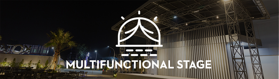 Panggung multi fungsi menawarkan ruang untuk berbagai acara, misalnya live band, konser akustik atau pentas modern dance untuk menarik dan menghibur pengunjung. Panggung ini juga cocok untuk acara kumpul komunitas.